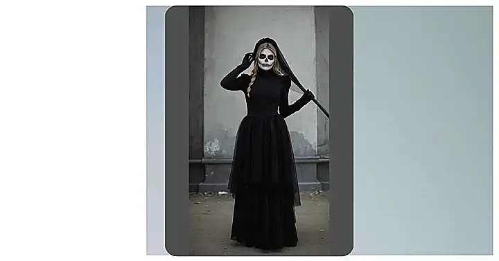 This costume is seriously cool, and it’s totally achievable if you’re in a pinch. All you need is a black outfit (like pants and a top, or even just a long black dress) and a long black jacket or cardigan. Add some edgy jewelry and makeup to really give it that Halloween vibe! If you’re feeling creative, try using black eyeliner and a little bit of face paint to create a spooky face design.