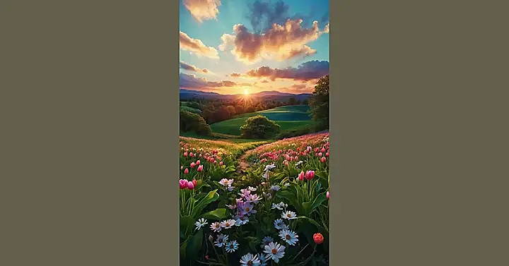 So, you’re looking for a spring wallpaper that’s less “grandma’s garden” and more “Instagram-worthy”? Well, look no further! This image is like a hug for your eyeballs, with a sunset that’s trying to out-pretty itself, and fields that look like they’re made of candy floss. Forget scrolling through endless boring backgrounds; this wallpaper basically screams, “I’m cultured, but also down to binge-watch Netflix!”