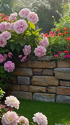 So, you wanna turn your backyard into a Pinterest-worthy paradise? Check out this garden, which looks like it’s straight out of a fairy tale! Those pink flowers are like nature’s own confetti, and that stone wall is a total power move in garden design. It is totally giving “secret garden” vibes, perfect for escaping homework or just chilling with your friends and enjoying the fresh air!
