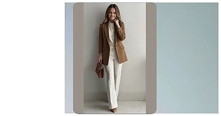 Okay, so ditch the bulky winter coats! Spring is like, “Hey, wanna be stylish AND comfy?” This outfit screams both. Check out the classy blazer paired with those crisp white pants – it’s giving major “I’m ready to take on the world (or at least ace my next history test)” vibes. Plus, that purse is the perfect size for your phone, wallet, and emergency snacks because priorities, right?
