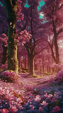 Just imagine having this on your phone – you could almost smell the fresh air and hear the birds chirping! It’s like a mini-vacation every time you look at it. And let’s be real, who wouldn’t want to escape to a magical forest full of pink flowers and mossy trees, even if only for a second? Plus, it’s way cooler than your friend’s basic blue wallpaper. This one screams “I’m ready for warmer weather and sunshine!”