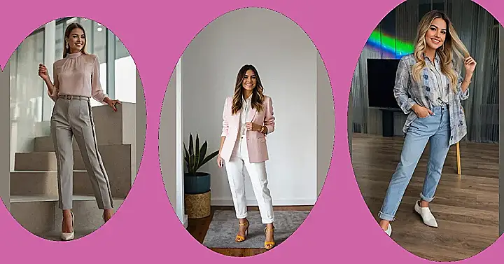 Is your closet still stuck in winter mode? Time to ditch the sweaters and bring on the sunshine with a killer spring office outfit! This look is like a breath of fresh air – a light pink blouse that’s not too flashy and some comfy-looking pants that still say “I mean business.” Plus, those shoes? Total power move! You’ll be strutting into work feeling like you own the place, ready to ace that presentation or just conquer another day.