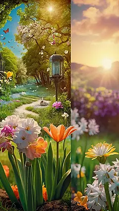 Plus, it’s like two wallpapers in one! On one side, you’ve got a whole enchanted forest thing going on, complete with lanterns and maybe even some fairies hiding in the flowers. On the other side, the golden hour light is giving serious main character vibes. Whether you’re a flower person, a sunset person, or just need a reminder that winter is finally OVER, this wallpaper will make your phone look like it was designed by a Disney princess who loves sunshine, bunnies, and flower power.