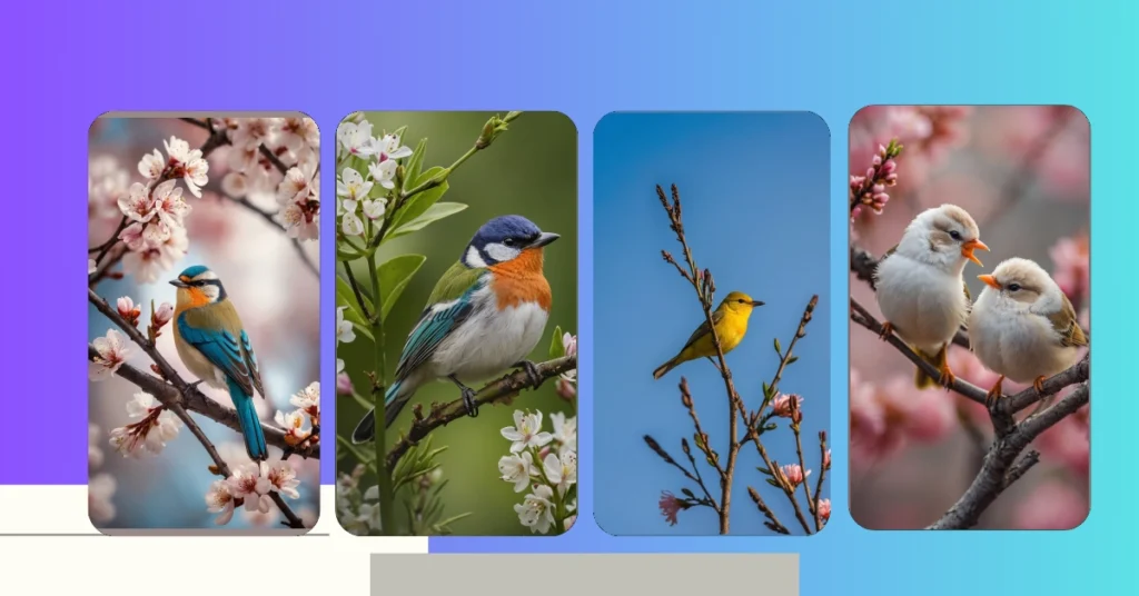 These fluffy fellas are totally embracing the whole “spring birds wallpaper” vibe. They’re perched on a branch like they own the place, surrounded by pretty pink blossoms. You can almost hear them planning their next epic adventure, which probably involves stealing berries and building the ultimate bird mansion. Hopefully, they invited us to the house warming party.