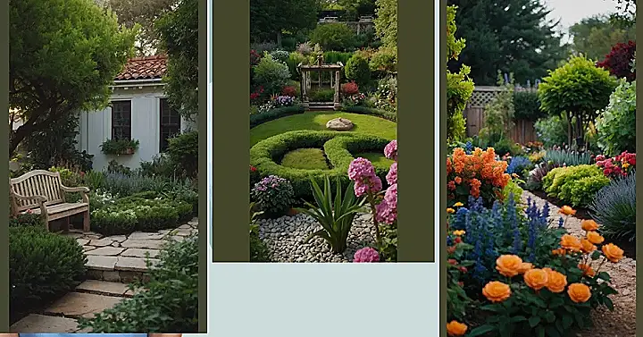 This garden looks like a party for your eyes! It’s bursting with color, from the bright reds and pinks to the soft purples and oranges. It’s like someone took all the prettiest flowers and just threw them together, and luckily it worked out beautifully. There’s a big, green bush in the middle that’s just chillin’, watching all the flowers have a good time. This garden is like a big hug for your soul, full of sunshine and joy.
