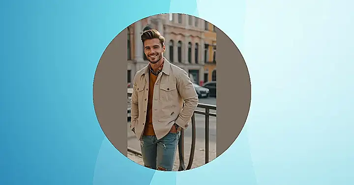 This guy knows how to rock a casual look! His brown jacket is totally rad, and those jeans are the perfect shade of blue. He looks super comfortable and ready for anything – maybe a hangout with friends, or even a trip to the mall for some new sneakers (because everyone needs a good pair of sneakers!). He looks like he’s got his own personal style going on, which is totally cool. Men’s fashion is all about finding what looks good on you, and feeling confident in your own skin – just like this guy!