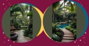 This garden is like something out of a fancy magazine! It’s got a little pond with fancy lily pads and colorful flowers that are just chillin’, soaking up the sun. It’s definitely not your average backyard, but that’s what makes it so cool. Like, imagine coming home from school and just chilling by this pond. You could imagine you’re in some fancy-pants tropical paradise, instead of your own neighbourhood!