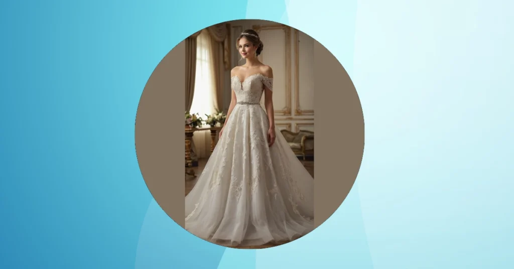 Isn’t this dress just, like, the epitome of “happily ever after”? Forget the basic white – this blush wedding dress is giving off total princess vibes but with a modern twist. All that lace and fluffiness looks so comfy, even if you’re stuck doing the electric slide at your reception. Plus, the off-the-shoulder look is way more chill than a stuffy neckline. Who needs Cinderella’s pumpkin carriage when you can rock this dress?