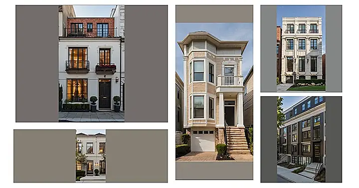 Seriously though, these houses are seriously stylish. The perfectly placed windows are like eyes peering out at the world, and the brick steps lead you to a front door that’s practically begging for a dramatic entrance. Forget those boring, square houses; these townhouses are like a modern art masterpiece that you could actually live in! Who needs a castle when you’ve got this?