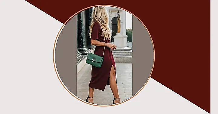 That burgundy dress is totally giving us “Christmas glam” vibes! It’s like the perfect blend of sophisticated and festive โ you know, the kind of outfit that screams “I’m ready to mingle with Santa himself (and maybe snag a mistletoe kiss).” Pair it with some killer heels and a pop of color with that emerald green purse and you’re ready to conquer any Christmas party, from grandma’s cozy gathering to a super-fancy event. It’s chic, it’s festive, and it’s oh-so-you!