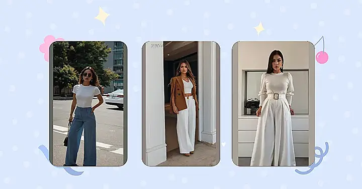 This outfit is the perfect example of “classy casual.” It’s got a touch of sophistication with the blazer, but the wide-leg pants and crop top keep it cool and comfy. Imagine you’re heading to a coffee shop to meet your friends, but you also want to look like you’re about to conquer the world. This outfit is basically the fashion equivalent of a superhero landing in a trendy cafe, ready to order a latte and discuss world domination (or just gossip, but hey, it’s all about confidence!).
