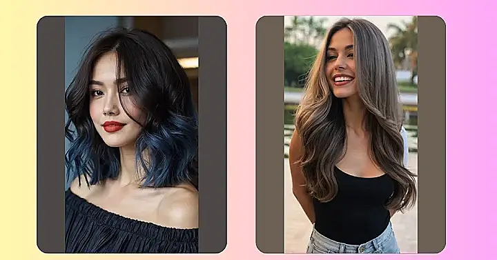 Thinking about switching things up with your dark hair? Adding a pop of color can be super fun, and this look is proof! Notice how the blue tips on those dark strands make her whole vibe a little edgy yet still totally chic? It’s like your hair is secretly rocking a cool, calm ocean at the ends. And the best part? It’s not a huge commitment, so if you’re nervous about going full rainbow, this is a chill way to dip your toes (or, more accurately, the ends of your hair) into the colorful side of things.