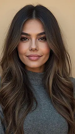 Thinking about switching things up with your dark hair? Check out this gorgeous brown-toned look! It’s like giving your hair a yummy chocolate makeover without actually using melted chocolate (which, trust me, would be a sticky disaster). Plus, adding a hint of brown can really brighten things up and make your hair look super shiny.