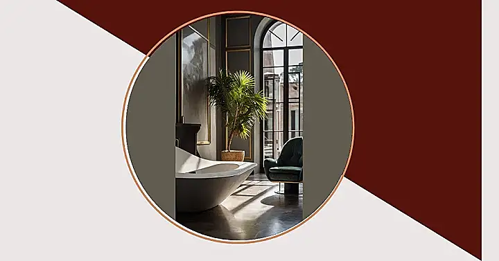 This isn’t your average bathroom; it’s like stepping into a mini-vacation without even leaving the house! You’ve got a tub that looks like it’s ready for royalty and a tropical plant chilling in the corner like it owns the place. You almost expect a butler to show up with a rubber ducky and a chilled glass of lemonade. Who needs to go to a spa when you can create this kind of southern interior vibe right at home?