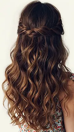 This hairstyle is like a hug for your hair! The loose waves are totally effortless and super cute, and the little twist at the top is just a touch of fancy. It’s like taking a casual look and giving it a little boost of elegance. You can wear it to school, to a party, or even just to hang out with your friends. This look is so versatile, it’s almost like having a magic wand for your hair!