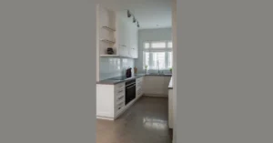 And let’s be honest, those white cabinets are a dream. They’re so clean and bright, they almost make you want to do the dishes (almost!). But the real star of the show is that beautiful hardwood floor. It looks so smooth and shiny, you could probably do some epic skateboarding moves… maybe not, but it definitely makes the entire kitchen feel extra fancy and sophisticated, even if you’re just making toast.
