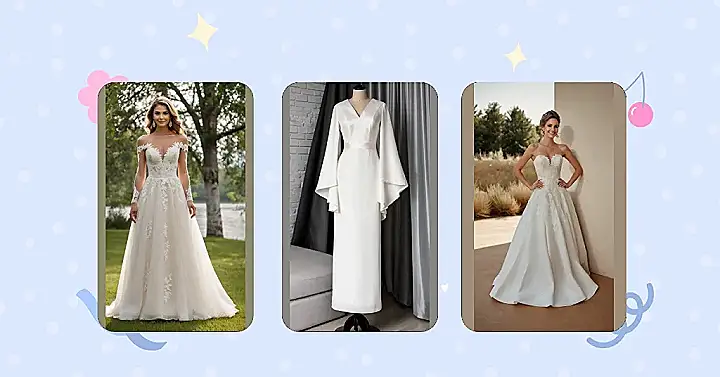 Seriously, this dress is so chic, it practically screams “I’m getting married and I’m going to look absolutely amazing doing it!” The sheer sleeves add a delicate touch of romance, while the sheath silhouette keeps the whole look effortlessly sophisticated. Forget about those puffy, meringue-looking dresses—this is all about clean lines and confident style. You’ll be the talk of the wedding, and not just because of the amazing cake (although that’s important too!).