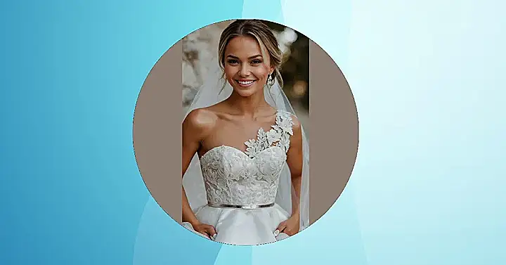 That one-shoulder style is totally giving me Greek goddess vibes, but way more modern and cool. And all those beads? They are like the fairy lights of the wedding world, catching every bit of light to make you shine brighter than your future. Just don’t go overboard with the glitter makeup, or you might actually blind someone with your awesomeness!