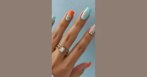 These nails are screaming “spring break!” I mean, look at that orange! It’s like someone bottled up the perfect sunset and poured it all over your fingertips. And the designs? Seriously cool. They’re like tiny little abstract art pieces that you can show off while you’re holding your iced latte.