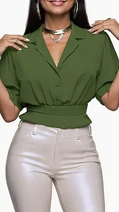 Seriously, this isn’t your grandma’s blouse! This isn’t some frumpy thing you’d hide in the back of your closet; it’s totally modern and has that perfect blend of casual and dressy. The short sleeves are perfect for warmer weather, and that army green color is so on-trend. Plus, that little waist detail makes it super flattering. Pair it with leggings and sneakers for a casual look or dress it up with some nice pants and heels – this blouse is as versatile as you are!