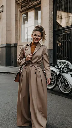 Adding pieces like a sleek black turtleneck and tailored pants under that coat just screams confidence. And check out that cool belt cinching the waist! It pulls everything together and makes you look extra put-together, even if you secretly tripped on your way out the door. It’s all about creating that polished image, showing everyone you mean business, or at least that you know how to dress the part of someone who means business, which is pretty much the same thing, right?