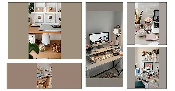 This desk is so organized, it practically sings! Just look at those perfectly placed plants, the pretty pink roses on the computer screen – it’s like a little slice of heaven for your homework. Forget messy piles of papers and tangled headphones; this setup is all about calm and productivity. You could totally channel this vibe to make your own study space feel super-chic and surprisingly stress-free. Imagine: no more frantic searches for your pen, just pure, unadulterated organization!