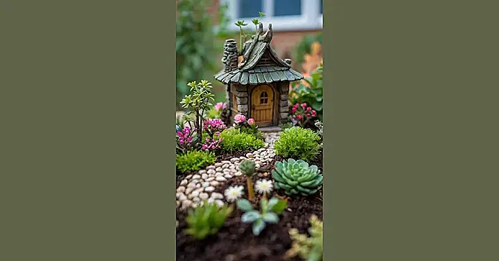 This miniature garden design is seriously adorable! It’s like someone built a whole little village for tiny people – complete with a charming cottage that looks cozy enough for a fairy family to live in. Imagine the tiny homeowner watering their miniature succulents and taking a stroll down the adorable stone pathway! It’s so cute you almost want to move in yourself (but you’d probably need a magnifying glass to find your keys).