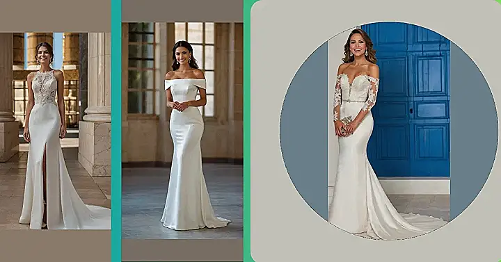This dress is like a fairytale come true! Imagine yourself walking down the aisle, looking like a total princess in this gorgeous off-the-shoulder wedding gown. The delicate lace top adds a touch of elegance, while the sleek, modern silhouette keeps it from being too fussy. It’s like the perfect blend of classic and contemporary—you’ll feel stunning and totally comfortable, ready to party the night away!