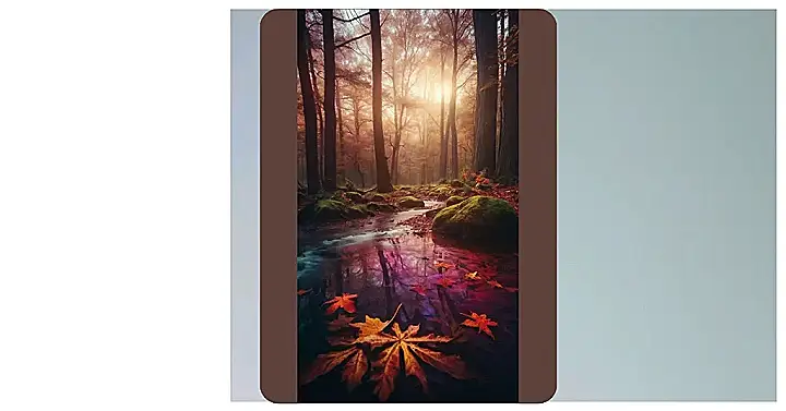 Imagine a world where the leaves are falling, the air is crisp, and the sky is painted in shades of purple and orange. That’s what this image is all about! It’s like stepping into a fairytale, with a magical forest and some majestic mountains in the distance.