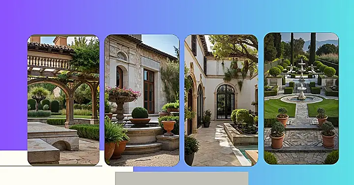 Imagine your backyard transformed into this! It’s like stepping into a movie set, but instead of actors, you’ve got perfectly trimmed bushes and fountains that seem to whisper secrets in Italian. You could totally impress your friends with your new “old world” vibe, and maybe even learn to say “ciao” to the postman every morning!