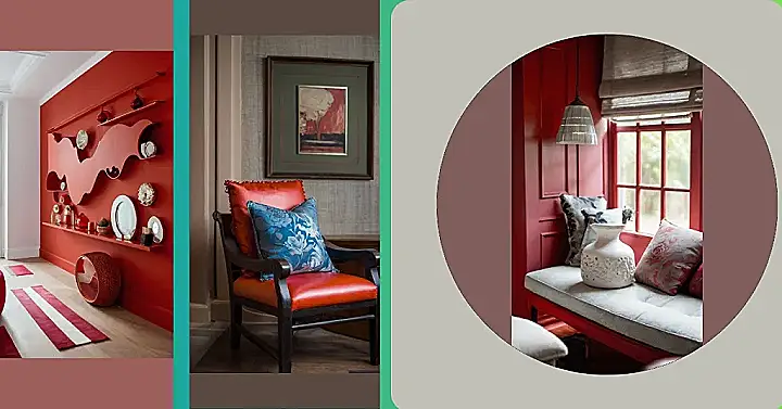 Seriously though, that red paint is a statement! It’s like the room itself is shouting “Look at me, I’m fabulous!” But even with all that vibrant red, the soft grey cushions and white vase create a really nice balance. It feels luxurious, but in a totally chill and comfortable way – perfect for when you want to be dramatic *and* relaxed at the same time. The whole thing is a total win for anyone who loves stylish and comfy spaces.