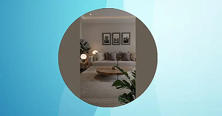 And check out that coffee table, it’s huge! It looks like you could fit an entire pizza on there… or maybe even two! Plus, those globe lights add a cool, futuristic vibe to all the earthy tones. It’s the perfect balance of nature and chill, which is exactly what a dream room should be, right? Just add a huge TV and you are all set to watch your favorite movie.