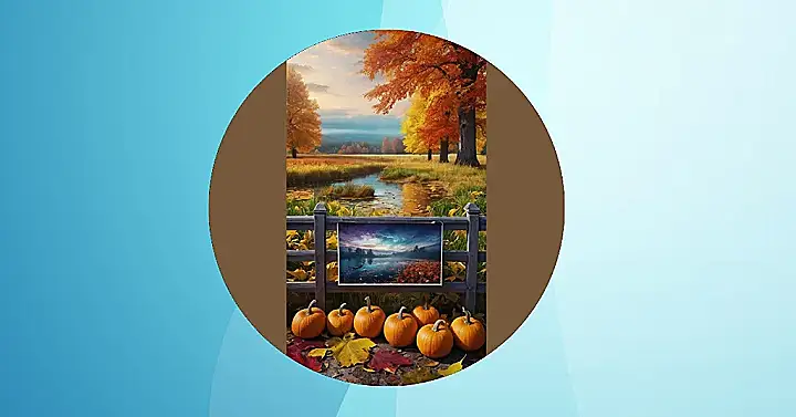 This picture is like a scene straight out of a fairytale! Imagine yourself walking through a forest, the air crisp and cool, the leaves crunching under your feet. The trees are all decked out in their finest fall colors, a mix of fiery oranges, deep reds, and golden yellows. You come across a little stream, sparkling like a jewel in the sunlight. And then, you see them – pumpkins! Scattered around like giant orange jewels, they’re just waiting to be picked and carved into spooky faces or delicious pies.