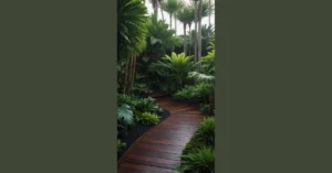 And look at that path! It’s like a winding journey through the garden, leading you to secret treasures and hidden surprises. You can almost imagine yourself stepping onto that path and letting the crunch of leaves under your feet guide you through this amazing autumn scene. Just don’t trip over those beautiful, but sometimes spiky, plants!