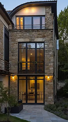 Picture this: you’re sipping lemonade in your very own French-inspired house, feeling like royalty… except maybe a slightly less stressed-out version. This design is all about that classic European feel, with a modern twist – think ancient stone walls meeting super-cool, massive windows. It’s like living in a castle built by someone who also owns a really awesome tech company.