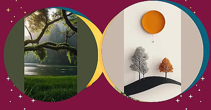 This totally rad image would make an awesome iPhone wallpaper! Imagine it: a giant orange circle—like a super chill sun taking a break—hanging out above a tiny landscape. You’ve got a wintery tree looking all frosty, a fall tree bursting with autumn colors, and a sneaky little bird seemingly holding onto the sun with a string. It’s like a mini-vacation for your phone’s home screen, proving that even small things can be seriously stylish. Perfect for those ‘fondos’ (backgrounds) you’ve been searching for!