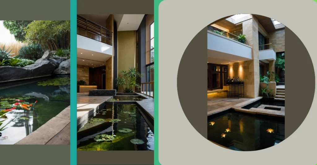 Imagine you’re chilling in a fancy hotel lobby, bored out of your mind. Suddenly, you spot something super cool: a mini-pond with little orange fish swimming around! It’s like a little slice of nature, right there in the middle of the building. Who knew you could have a peaceful pond indoors?