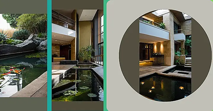 But here’s the funny part: if you were a goldfish, you’d probably be pretty confused about the whole indoor pond situation. Imagine swimming in a big, beautiful pond, and then suddenly finding yourself in a fancy house with a balcony, a table, and no way to escape. It’s like you’ve been transported to a whole other world, and the only view you get is of the fancy stone walls and the stylish lights. I guess even fish can appreciate good design!