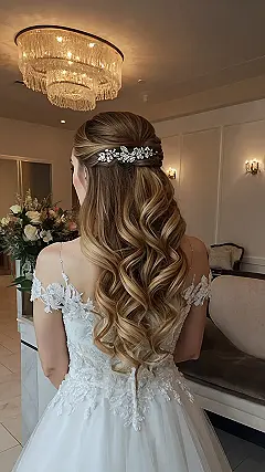 Imagine yourself walking down the aisle (or maybe just to the cafeteria!), with these gorgeous curls bouncing with every step. The best part? This isn’t some super complicated hairstyle that takes hours to do. It’s elegant, it’s romantic, and it looks like it took way less effort than it probably did. So, if you’re dreaming of long, flowing bridal curls, this is totally your inspo!