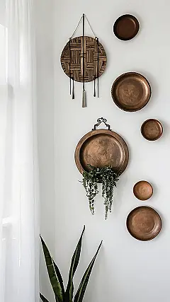 The best part is, it’s super easy to copy. Just grab whatever random plates and wooden things you can find (ask your grandma for extras!). Arrange them on the wall, add a plant for that touch of “I’m a responsible adult,” and boom! Instant living room decor that’s unique and maybe a little bit weird. Your friends will definitely be talking about it, whether they love it or hate it.