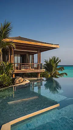 This place looks like it was designed to make you forget about homework (which, let’s be honest, is ALWAYS a good thing). I bet the person who designed this place got a lot of inspiration from watching travel videos and dreaming of vacation days. I wonder if they added a secret passage to the kitchen so you can grab snacks without leaving the beach? That would be genius resort design, wouldn’t it?
