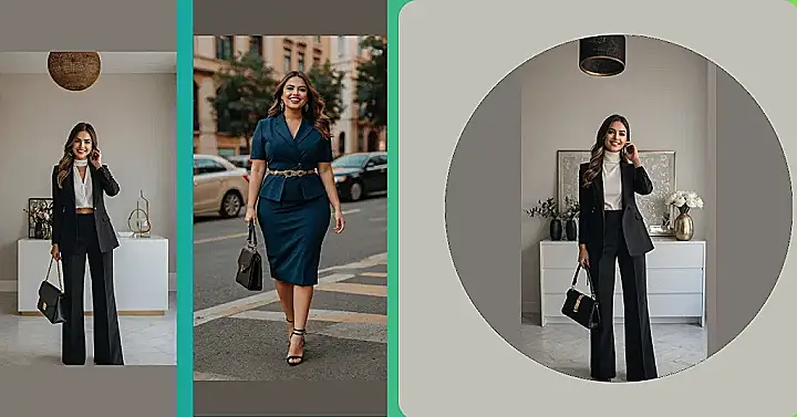 Look at her! She’s rocking that black suit like she owns the place, which honestly, when you put on a sharp outfit like that, you kind of feel like you do. This is proof that ‘professional’ doesn’t have to mean boring librarian vibes (no offense to librarians!). It can be sleek, stylish, and make you feel like you could sell ice cream to a polar bear. Finding the right outfit can make you walk taller and smile wider than if you were still in your cozy, questionable-stain sweatpants from yesterday.