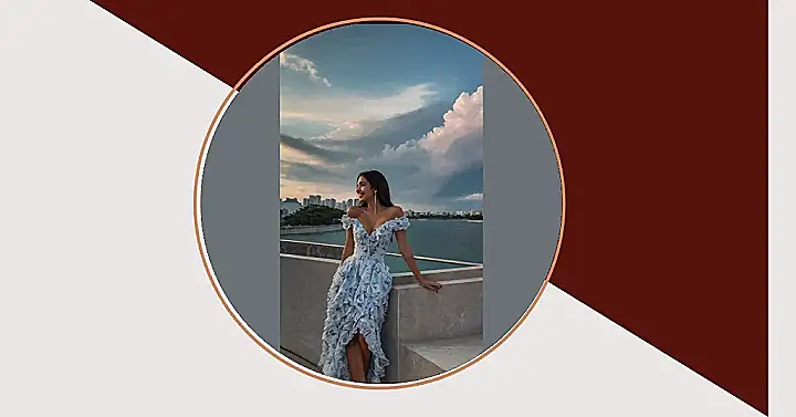 This girl is rocking a seriously cute blue floral frock, and it looks like she’s having a blast in the city! I bet she’s on her way to a fancy dinner, maybe a rooftop party, or maybe she’s just out enjoying the beautiful sunset. Whatever it is, she looks absolutely stunning. That frock is totally perfect for a night out, and the way it flows in the breeze just adds to the whole dreamy vibe. It’s like something you’d see in a fairytale, but with a modern twist. And those clouds in the sky? They’re like a giant canvas painted by a master artist!