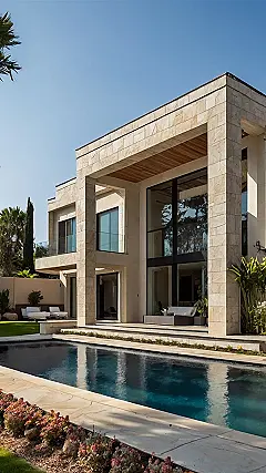 This house is seriously awesome! It’s like something out of a movie, all sleek and modern with a pool so cool you’ll think you’re living in a luxury resort. Imagine those amazing floor-to-ceiling windows letting in all the sunshine, or the sweet evening light highlighting the beautiful stone. The perfect spot for a sleepover with your friends, right? It’s the ultimate example of a luxury residential house plan – even if you have to save up your allowance for a few centuries to afford it!