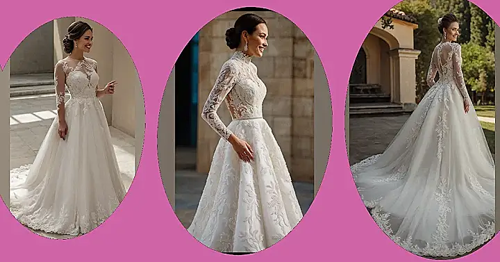 Think about it: this is the dress you’ll see in photos for the rest of your life. The lace details are seriously stunning, and the long sleeves add a touch of elegance, right? Choosing “the one” is a big deal, kind of like deciding what to order for lunch every day, but way more important. Just make sure you can actually sit down and eat cake in it; comfort is key, even on your big day!