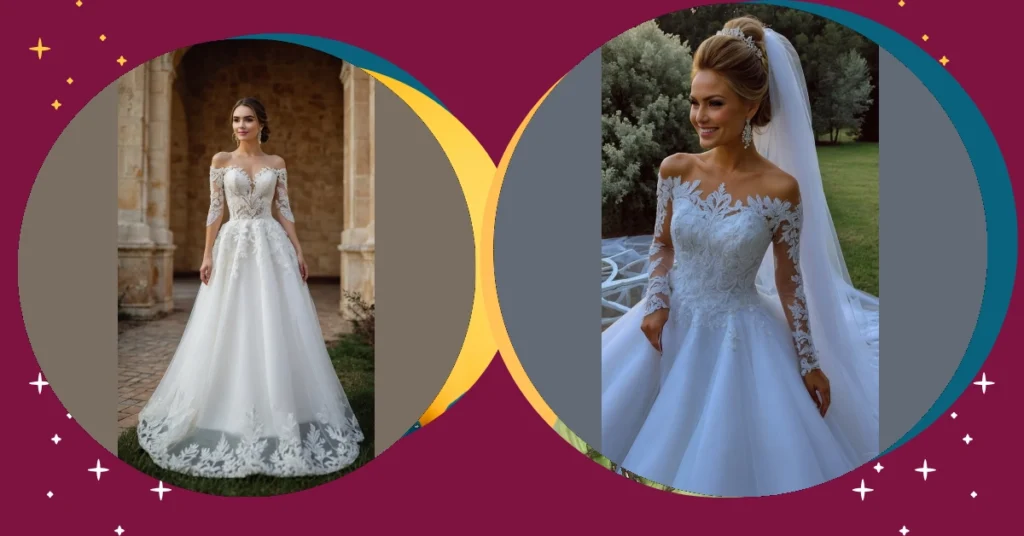 That dress is seriously giving princess vibes! The lace sleeves and open back are super pretty, and the way it flows all the way to the ground? It’s like something out of a fairytale! Imagine twirling around on the dance floor in that – your partner wouldn’t be able to take their eyes off you, and you would feel like you are walking on a cloud of dreams, especially if you marry Prince Charming himself.