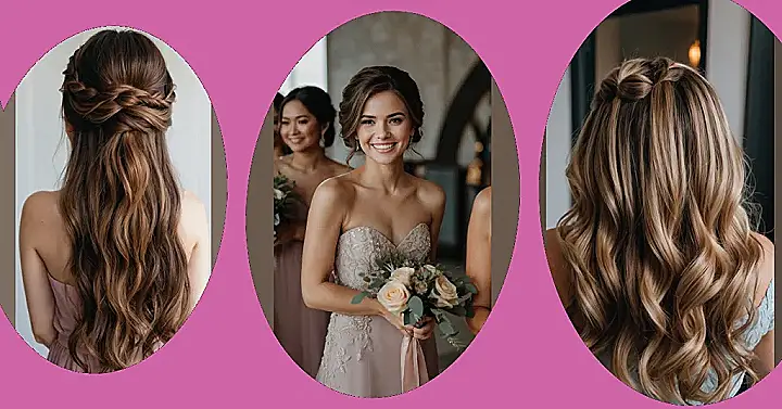 And the best part? It’s not too complicated! You can totally do this yourself with some bobby pins and a few minutes of practice. Just think of it as a mini art project for your hair, and you’ll look amazing in no time! This look is perfect for a bridesmaid who wants to be stylish but not over the top. So ditch the boring ponytail and try this simple, chic half-updo – you won’t be disappointed!