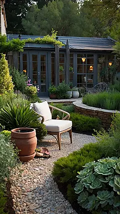 This garden looks so zen, it’s like a spa day for your eyeballs! Seriously, who wouldn’t want to chill in that little shed-slash-guest-house at the back? The super neat design with the pebble path, perfect lawn, and plants that look like they’re attending military school has me wondering if the homeowner’s superpower is taming unruly shrubs. It’s so creative, it makes me want to get off my phone and maybe…just maybe… pull a weed or two.