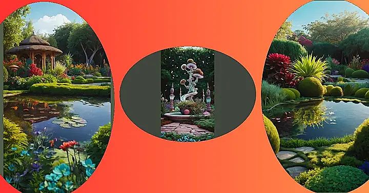This picture is like a little slice of paradise! The vibrant colors of the flowers and the lush green grass make you want to take a deep breath and relax. It’s a secret garden where you can escape from the hustle and bustle of everyday life. Just imagine yourself strolling through the garden, the warm sunshine on your face, and the gentle breeze whispering through the leaves. You could even take a dip in the pond—just be careful not to disturb the sleepy frogs!