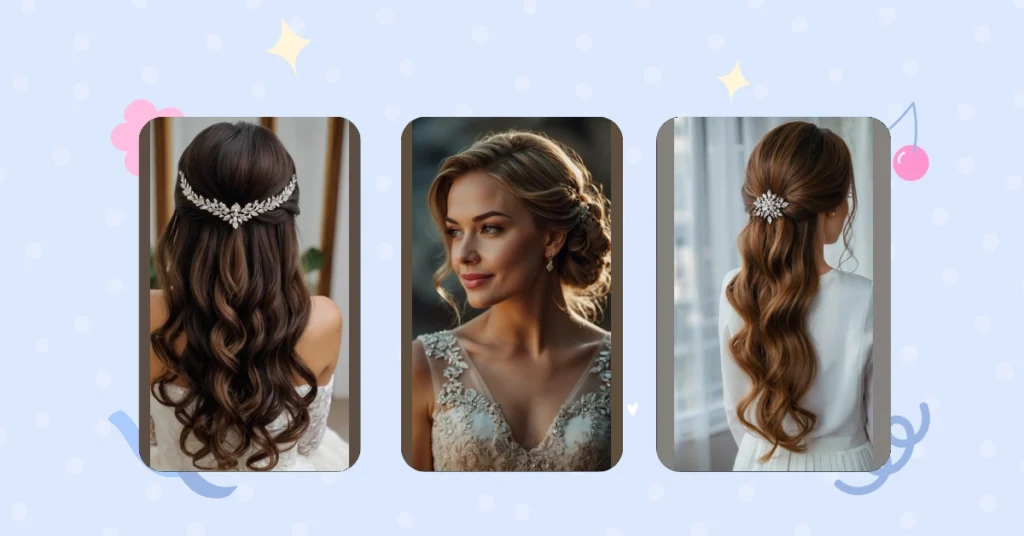 And speaking of fancy, that hair clip is giving total ice queen vibes (in a good way!). It’s like a tiny tiara just for your hair, so you can sparkle and shine while saying “I do.” This style is perfect if you want to look elegant without looking like you spent five hours glued to a salon chair. It’s like the ultimate hack for looking effortlessly gorgeous!